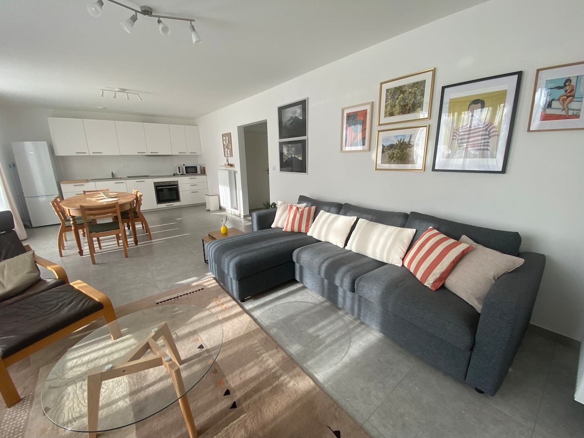 Bucură-te de un apartament plăcut (80m2) într-o casă nouă elegantă, cu un cadru verde și liniștit. Ești aproape de Seneffe și Feluy și de drumurile principale la 30 de minute de Bruxelles, la 20 de minute de Mons sau Aeroportul Charleroi (sud Brussel). Descoperă canalele și castelele, Musée de Mariemont, Carnavalul Binche, Planul Tilt din Ronquières și festivalul său. Rezervă o sesiune excepțională de saună sau un masaj în zona noastră privată de wellness la un preț scăzut.