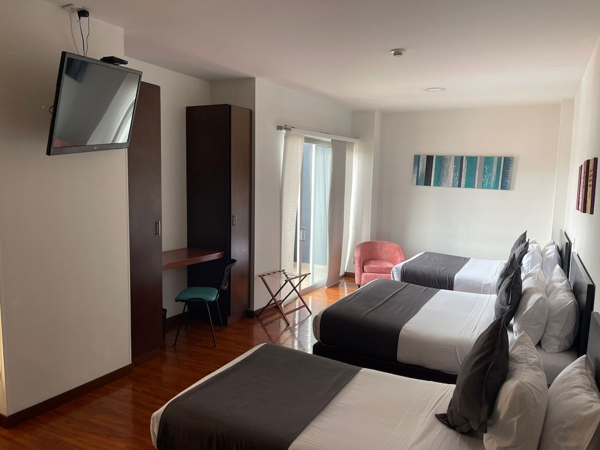 Descoperă confortul în camera noastră spațioasă din Bogotá, dotată cu un pat dublu confortabil, un pat simplu și o canapea extensibilă confortabilă. Designul modern și funcțional se combină cu detalii confortabile, oferind un spațiu versatil ideal pentru familii sau grupuri. Bucură-te de o ședere plăcută, cu toate dotările de care ai nevoie.