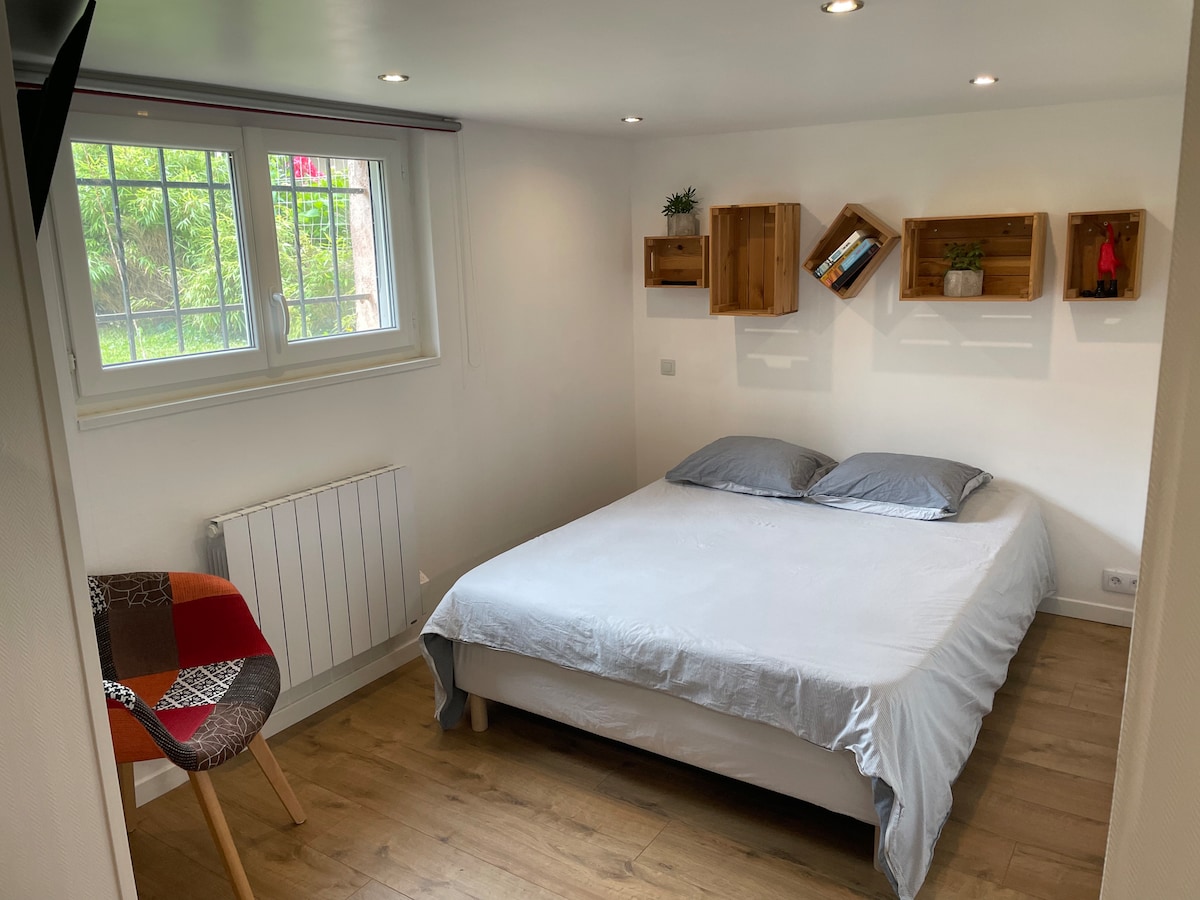 Studio modern și confortabil. Situat în Toussieu (69), într-un mediu liniștit și calm, într-o zonă rezidențială, este ideal pentru o ședere liniștită, rămânând în același timp aproape de principalele puncte de interes. Ce se află în apropiere: Aeroportul Lyon-Saint-Exupéry: 20 min/Eurexpo Lyon: 15 min/Stadionul Groupama/Arena LDLC: 14 min Château de Rajat: ~8–10 min/Lyon: ~30 min. ⚠️Această cazare nu este o cameră pentru îndrăgostiți și nu este destinată petrecerilor și serilor