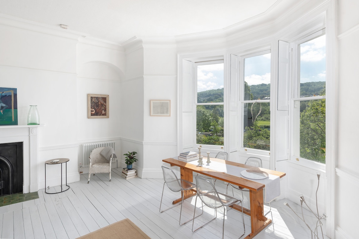 Acest apartament luxos și elegant se află în inima cartierului artistic Bath. Apartamentul este extrem de generos, cu mobilier și opere de artă, care sunt un amestec eclectic care se întinde pe 250 de ani. Formele originale din ipsos, ferestrele înalte care permit multă lumină naturală, o bucătărie complet echipată de ultimă generație și o terasă spectaculoasă cu vedere la copaci vechi de secole vor însemna că nu vrei să pleci niciodată...cu excepția celor mai bune cafenele, magazine de tip boutique și curiozități sunt la ușa ta.