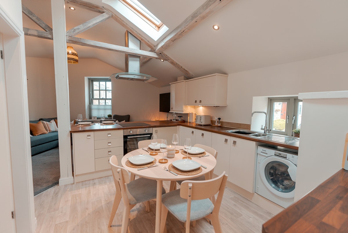 Refugiu frumos în hambar, cu cadă cu hidromasaj și opțiuni pentru ~ tratamente spa/masaje/tratamente faciale ~ chef privat ~ pilates, yoga, zumba Ideală pentru cupluri, familii/grupuri, în incinta proprietății istorice Oulton Smithy. Aproape de circuitul de curse Oulton Park, în frumosul mediul rural din Cheshire. Plimbări frumoase prin pădure și puburi rustice în apropiere. Hambarul transformat este situat în spatele fierăriei, cu intrare proprie, parcare securizată și o cadă cu hidromasaj privată uimitoare; are două dormitoare și două băi private. Detalii de lux pretutindeni.