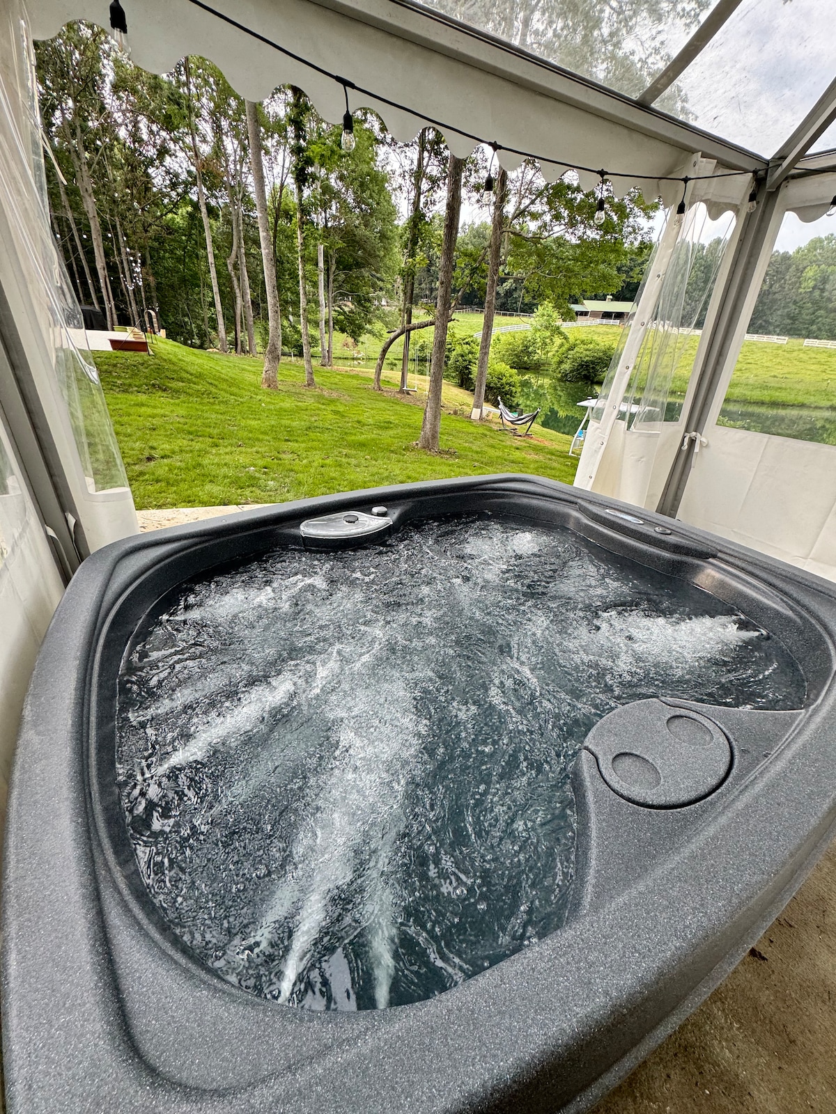 Bine ai venit în cupola noastră liniștită de glamping de la fermă, cuibărită în inima naturii, pe o proprietate întinsă de 28 de acri. Perfect pentru o escapadă liniștită, domul nostru oferă un amestec unic de confort și aventură. Descoperă forfota vieții de oraș și relaxează-te sub stele. Indiferent dacă ești în căutarea unei escapade romantice, a unei vacanțe de familie sau a unui refugiu solo, proprietatea noastră oferă cadrul perfect pentru o experiență memorabilă. Descoperă frumusețea și liniștea vieții la țară.