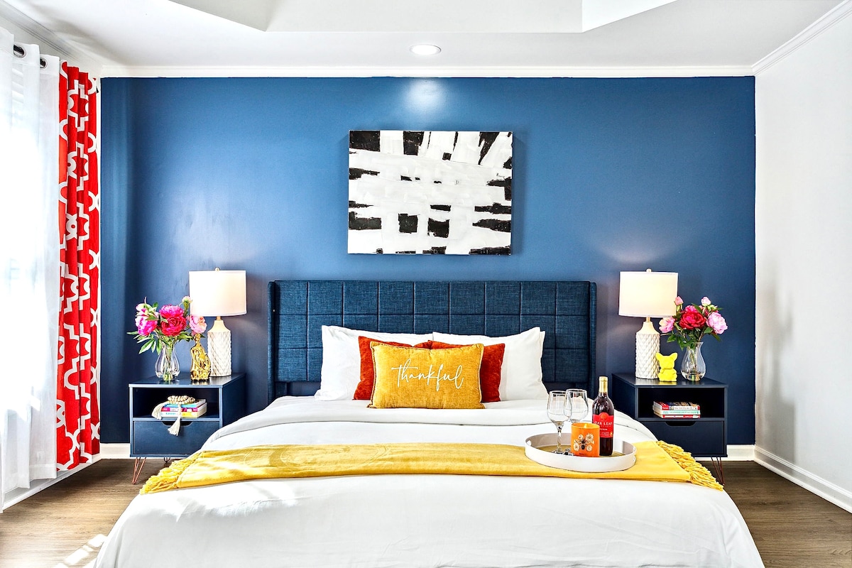 Bucură-te de o experiență elegantă în această locuință situată central. Te vei bucura să fii în inima Atlantei. Distanța de mers pe jos până la coca-cola, acvariu, stadionul Mercedes bens, arena fermei de stat. Televizor de 70 inch în sufragerie și TV de 50 inch în dormitor cu cablu și internet gratuit. Situat la etajul 19, cu vedere excelentă la oraș. Pardoseli antibacteriene, purificator de aer și unități noi de aer condiționat. Clădirea nu are parcare la fața locului, dar o mulțime de opțiuni din apropiere.