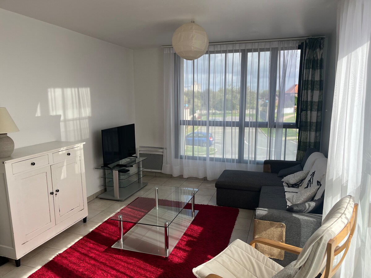 Apartament complet renovat și confortabil (bucătărie complet utilată, aer condiționat, fibră, Netflix, mașină de spălat rufe, uscător de rufe) în centrul orașului Chauny, la 1 minut de mers pe jos de gară și de toate facilitățile (restaurante, brutării, bănci, tutungerii, magazine de cartier). Tren direct spre Paris în 1h15.