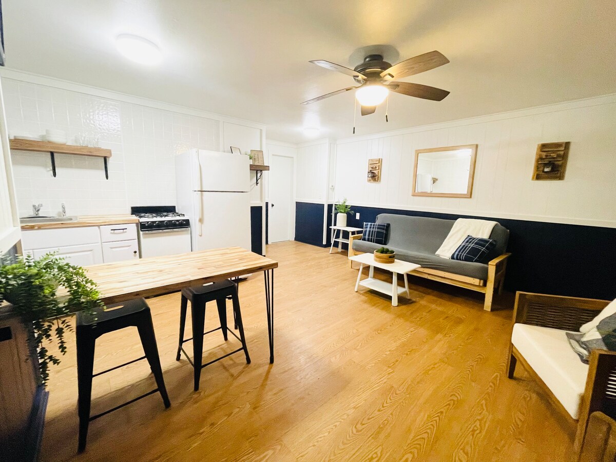 Bine ai venit la Bemus Point Lodge! Acest motel tip boutique recent renovat este locul perfect de vacanță pentru tine și familia ta. Unitatea 1 este suita noastră de lux, care oferă 1 dormitor (pat matrimonial), 1 baie, bucătărie și living cu futon pentru dormitoare suplimentare. Bucură-te de acces la lac pe doc pentru a urmări frumosul apus de soare după o zi pe lac. La câțiva pași de centrul orașului Bemus, golf, restaurante, baruri și magazine. ** Închirieri de bărci disponibile la cerere **