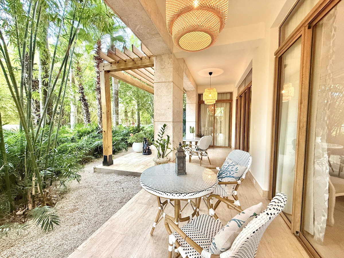 Un apartament clasic în zona rezidențială exclusivistă, închisă, lângă Altos de Chavon. Perfect pentru o familie mică, un grup de prieteni sau pentru cineva care dorește să lucreze din paradis. Apartamentul nostru complet mobilat are: • Pat matrimonial • Două paturi duble • Dulap cu intrare separată • Balcon spațios și vedere la grădină • Wi-Fi cu fibră optică - 40 MBPS • Acces la piscină - piscină infinită, jacuzzi și foișor • Acces la sala de sport - alături • Bucătărie completă • Mașină de spălat și uscător în unitate • Parcare pentru 1 mașină • AC central • Pack ’N Play