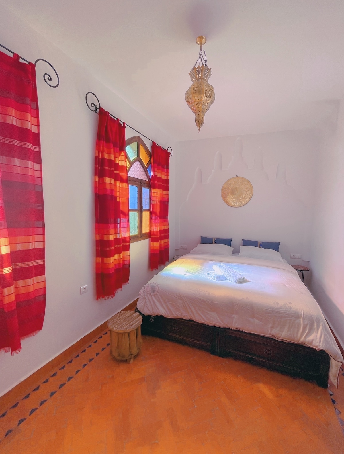 Acest loc special este aproape de toate, facilitând planificarea vizitei. Apartament frumos în vilă cu grădină uimitoare lângă râu, te poți bucura de o dimineață uimitoare cu păsări cântând în grădină și râu sună destul de noaptea un acoperiș special cu o priveliște unică toată vechea Medina pe ochii tăi. Nu este nevoie să vă faceți griji cu privire la 2 minute între locul de parcare și casă. Bucură-te de designul tradițional în combinația de apartamente dintre detaliile marocane și africane.