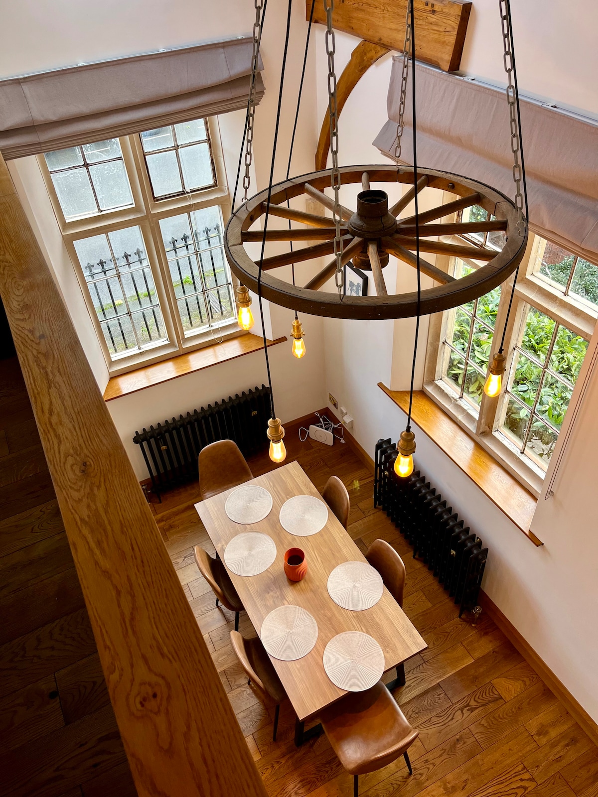 Boddington Mill is a stunning countryside retreat in the heart of the Cotswolds, steeped in history and rural charm. The building retains industrial mill parts which intersect multiple levels for a unique and generous living space. Its south-facing garden includes outside dining, wood-fired hot tub, and large lawn, home to wildlife and fruit-bearing trees. Inside, the three king sized bedrooms feature luxury bedding beneath vaulted, oak-beamed ceilings and period windows. Sky TV, Sonos speakers.