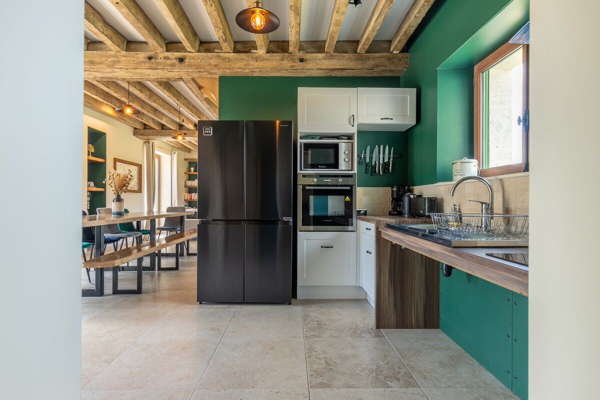 Niché au cœur de la verdure, le Gîte des Lilas vous accueille dans une élégante longère familiale alliant charme authentique, confort moderne et beaux volumes. Idéal pour des retrouvailles en famille, entre amis ou pour un séminaire, il offre 6 chambres, 5 salles de bain et de vastes espaces conviviaux. Profitez d’un domaine boisé de 10 000 m² avec terrasse, jeux et vélos, à 15 min de l’A85 et à 25-30 min du Zoo de Beauval et des châteaux de la Loire, dans un cadre paisible et ressourçant unique