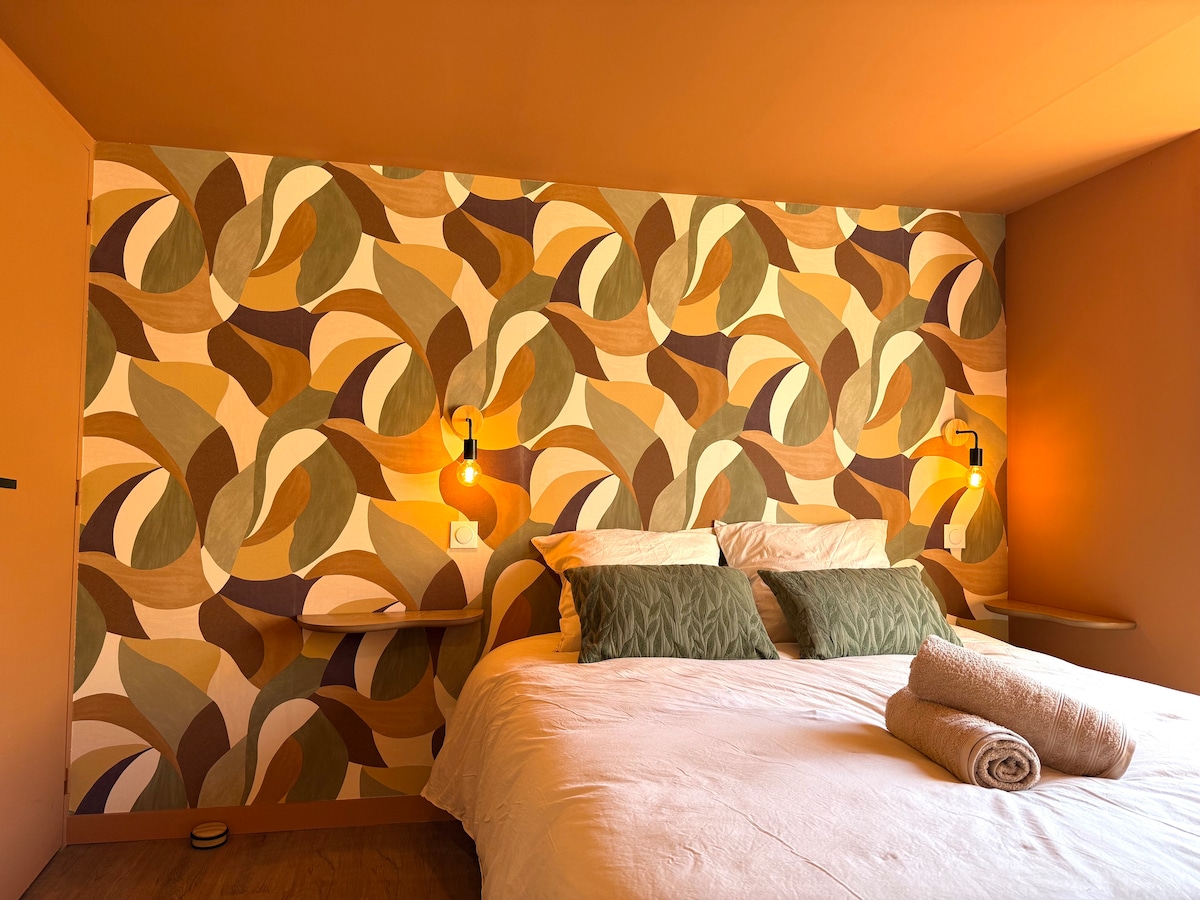 „La Suite” este o cameră excepțională situată în Chiroubles, în inima orașului Beaujolais. Cu un spa privat în aer liber, acest spațiu de aproximativ 70 m2 îți va oferi confort optim (duș XL, TV conectat, difuzor Marshall, chicinetă echipată, Wi-Fi...) cu o priveliște uluitoare! La mezanin vei găsi un pat matrimonial cu lenjerie de pat spre încântarea ta.