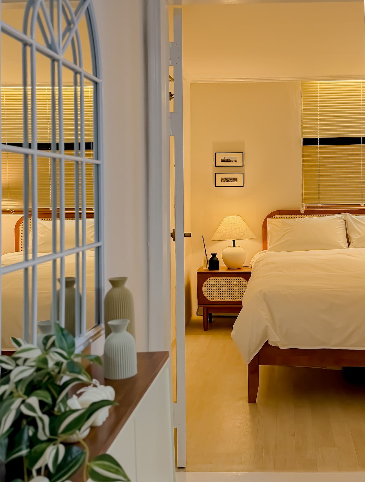 (Casă). Case în copac Se află într-o zonă rezidențială liniștită din Buk Suwon. Este o casă separată plină de amintiri calde ale gazdei născute și crescute aici. Etajul al doilea este încă ocupat de părinții mei. Am remodelat o parte din casa veche de 40 de ani, iar tot mobilierul din lemn din locuință a fost făcut manual de soțul meu, care conduce un atelier de lemn. Am deschis-o ca o casă pentru ca mulți oameni să experimenteze un showroom de mobilă și un spațiu privat, care este, de asemenea, casa de vacanță a familiei noastre. Am pregătit cu atenție Suwon, un oraș necunoscut călătorilor, astfel încât să poți petrece o zi confortabilă aici, fără niciun inconvenient. ... Atât dormitorul principal, cât și livingul au ferestre orientate spre sud-vest, așa că este destul de frumos când intră soarele de după-amiază, dar este o cazare retro-emoțională, cu o atmosferă foarte umedă și slabă într-o zi ploioasă. ☾ Un loc în care noaptea este fermecătoare, Sperăm să vă odihniți confortabil într-o locuință grea, unifamilială. ⠀ ⠀ ‼