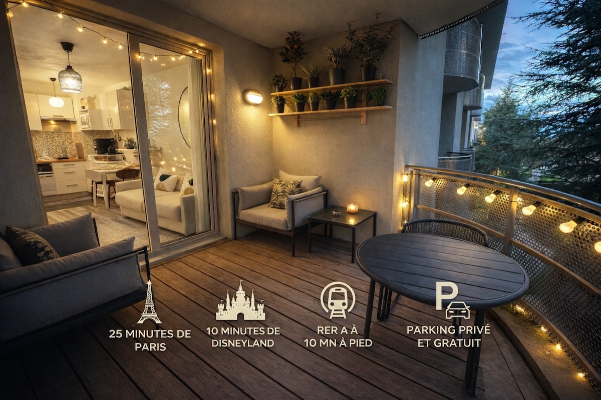 Bine ai venit la Cocon de SaBen, un apartament modern, confortabil și liniștit, situat ideal între Disneyland Paris (10 min) și Paris (25 min cu RER A direct). Bucură-te de cazare confortabilă cu balcon, vedere la verdeață și lac, Wi-Fi cu fibră, TV conectat cu Netflix și Prime Video, bucătărie utilată (mașină de spălat vase, friteuză, cuptor cu microunde), mașină de spălat rufe și parcare privată securizată. Perfect pentru familii, cupluri sau profesioniști care doresc să combine relaxarea, accesibilitatea și liniștea.