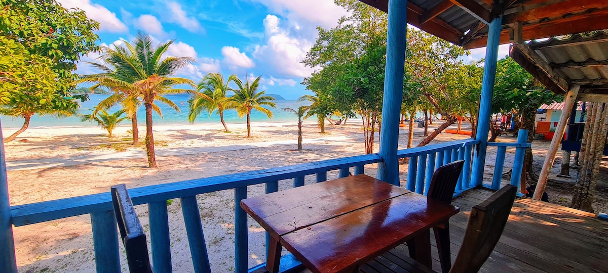 An entire house, on the beach, on an island, just for you! Enjoy a unique stay in a charming beach house with the most beautiful views of the sea and sunrise. This wooden house is sitting on the main beach of the Cambodian village of M’Pai Bay located on the island of Koh Rong Sanloem, off the coast of Sihanoukville. Three bedrooms with open-private bathrooms living area and amenities Terrace overlooking "your" beach Perfect for creating memories with family and friends