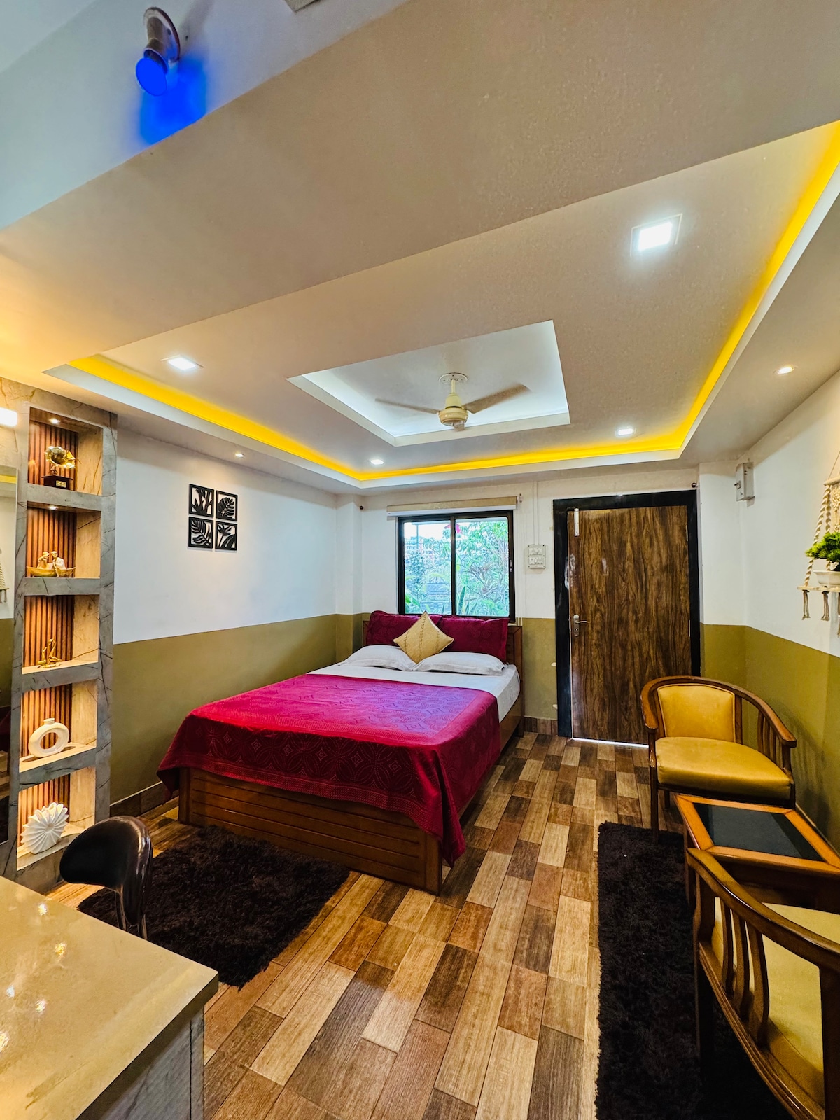 Saanj Studio– Nook este un studio modern, proiectat cu atenție, în Azara, la doar 5–10 minute de aeroportul Guwahati. Ideal pentru zboruri dimineața devreme și sosiri noaptea târziu, familii, cupluri și călători singuri, oferă un cadru calm și confortabil, cu Wi-Fi fiabil, apă caldă și check-in independent fără probleme. Studioul este aproape de magazine universale, farmacii și restaurante locale, cu Zomato, Swiggy și BigBasket disponibile pentru mâncare și produse esențiale zilnice.