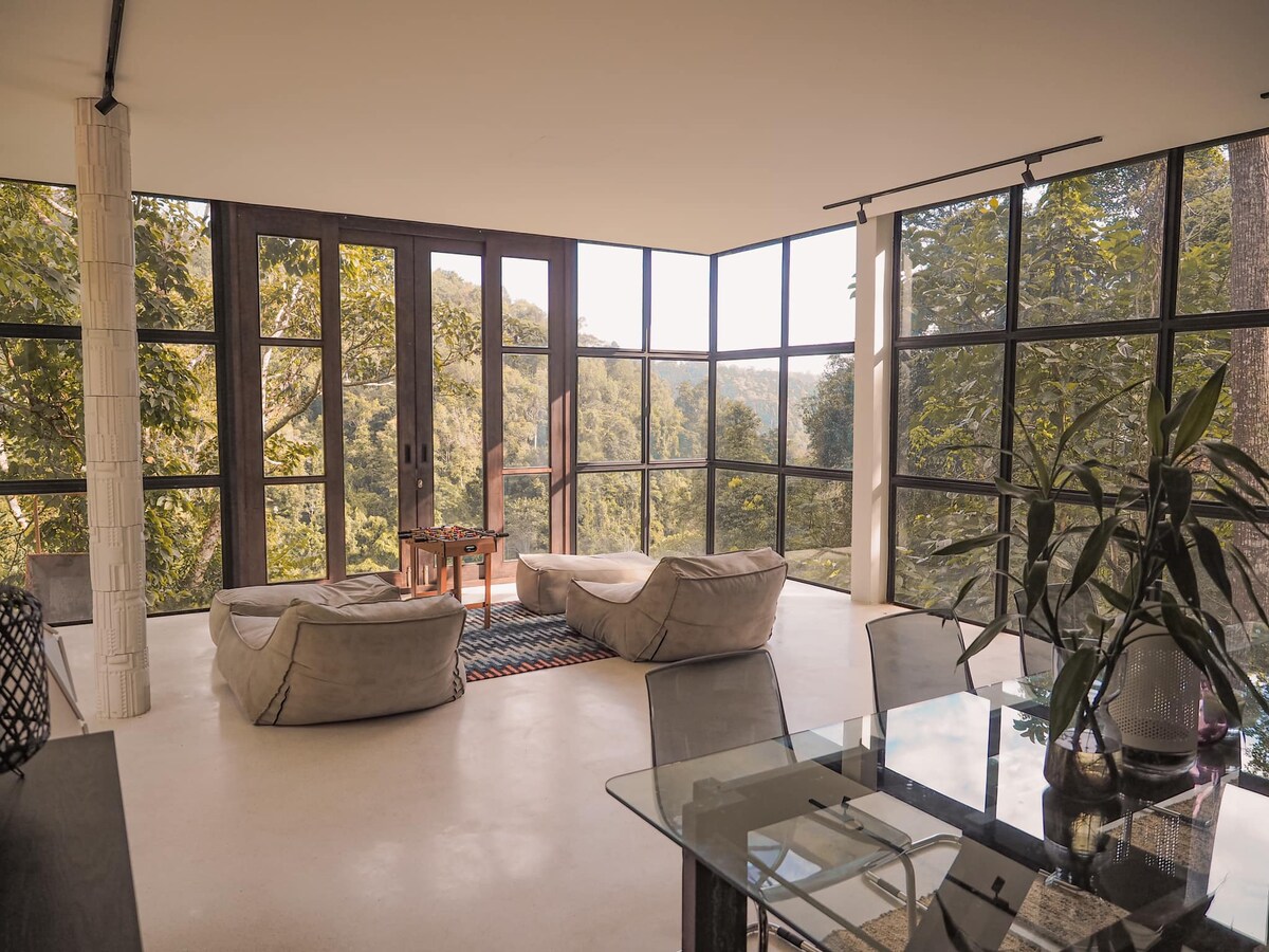 O vilă spectaculoasă cu 5 dormitoare și vedere la munte, cu piscină privată, situată pe proprietatea noastră privată magnifică de 10 acri,bucurându-se de o terasă uimitoare la piscină, unde oaspeții vor experimenta cea mai uluitoare vedere a munților, a Parcului Național și a peisajului rural înconjurător. Pardoseli din lemn de înaltă calitate, corpuri de iluminat și accesorii. Microbuz disponibil pentru închiriere contra cost și trebuie rezervat în avans. Poziție unică Wi-Fi gratuit securitate 24 de ore