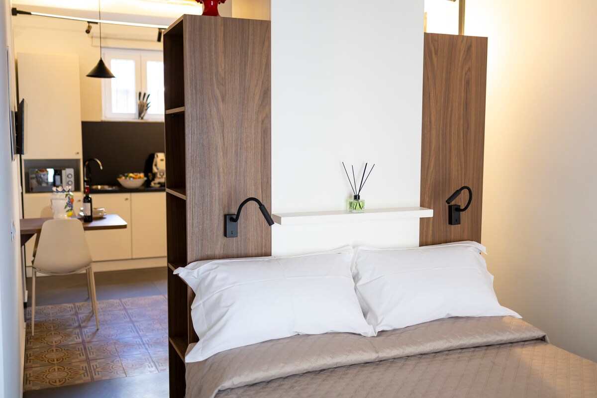 O nișă perfectă și romantică unde poți trăi momente de neuitat de fericire! Apartamentul este situat într-o clădire elegantă din anii 1600 complet restructurată, parte a vechiului Teatru Bellini. Chiar în inima centrului istoric al orașului Palermo și lângă biserica Martorana, partea San Cataldo a traseului UNESCO- „Arab-norman Palermo”. De pe terasa panoramică te poți bucura de priveliști magnifice asupra orașului, mării și dealurilor care încoronează Palermo.