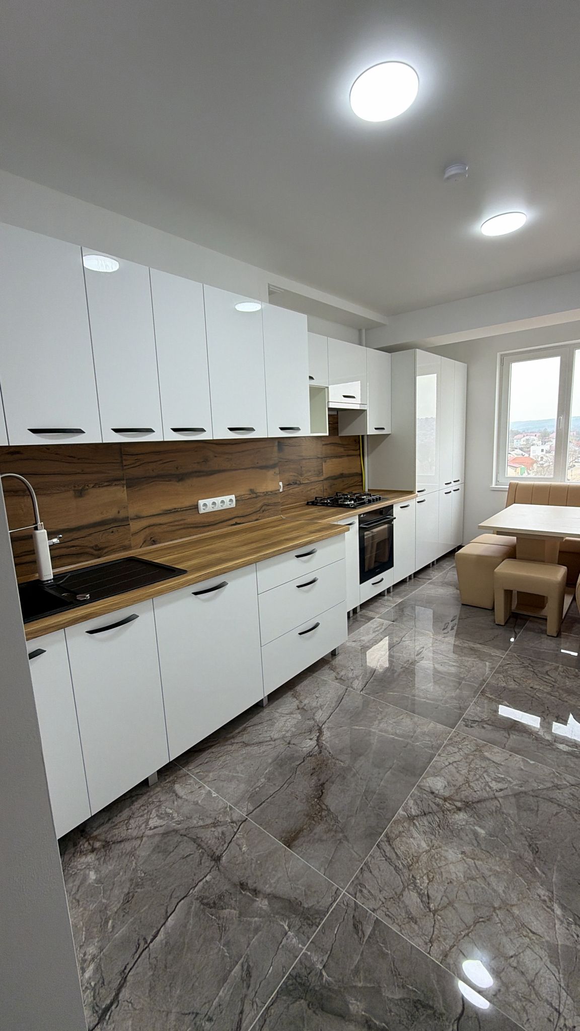 Апартаменты расположены в самом сердце Комрата — в шаге от мэрии, университетa, уютных кофеен, магазинов и аптек. Это оживлённый центральный район с развитой инфраструктурой, идеально подходящий для деловых и туристических поездок. Несмотря на расположение в эпицентре городской жизни, в самих апартаментах царит удивительная тишина и комфорт.