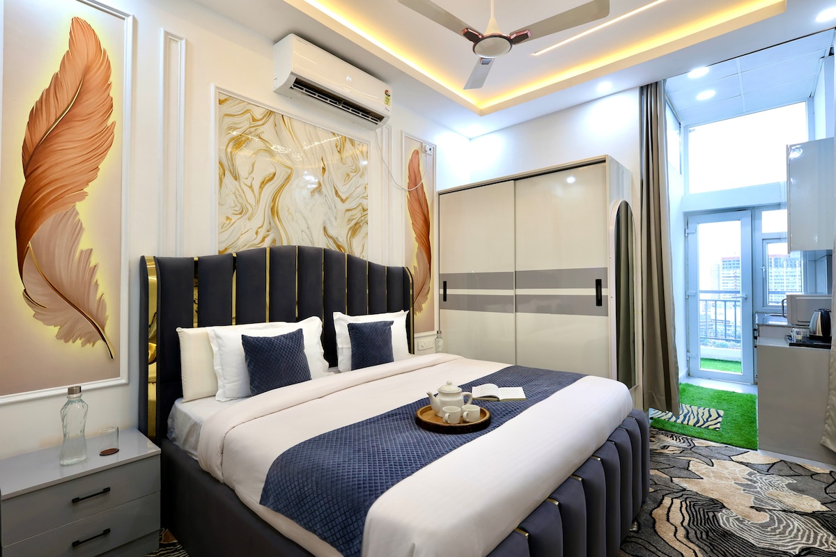 A couple friendly Private apartments with stunning views, a king-sized bed, and a fully-equipped kitchen. Enjoy seamless connectivity with fast WiFi and stay entertained with our sleek smart TV with free access to OTTs. Complimentary amenities include an Electric Kettle, Microwave, Induction cooktop and toiletries - your home away from home! Daily cleaning is available and the timings are (11 AM to 6 PM) Compulsory ID proof (Adhaar/DL/Passport) required for all guests before check-in.