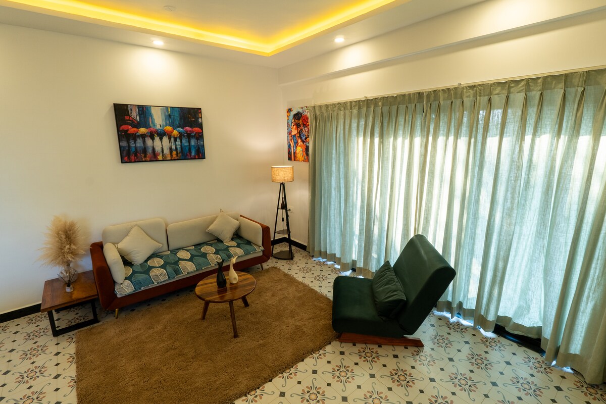 Experimentează Gem'Ray, by @ray_cation: un apartament modern înfășurat în livezile de mango, unde șoaptele naturii se amestecă cu pulsul vibrant al Goa 🌞 1BHK Oasis: trezește-te cu cântece de păsări și păuni (dacă ai noroc), apoi explorează cafenelele, cluburile și plajele pline de viață. 🏖️ 📚Relaxează-te cu o carte, cucerește lucrul de la distanță 💻 cu WiFi robust + Power Backup⚡ 🚗Perfect gata să acceseze hotspoturile din Goa - Anjuna, Assagao, Baga, Vagator, Morjim 🅿️În plus, bucură-te de un spațiu de parcare amplu, un lux neobișnuit în Goa!