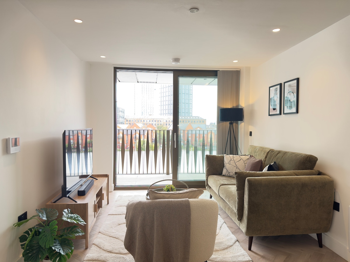 Discover contemporary living in this spacious two-bed apartment, ideal for business travellers, couples, and families! Enjoy riverside views and a private terrace. The open-plan living area features a fully equipped kitchen & sleek décor. Free parking, two plush beds, high-speed WiFi, a dedicated workspace, and a huge 80-inch TV! Located just moments from Chapel Street’s top restaurants, cafes, and cultural sites, this apartment offers comfort and convenience for your stay in Manchester.