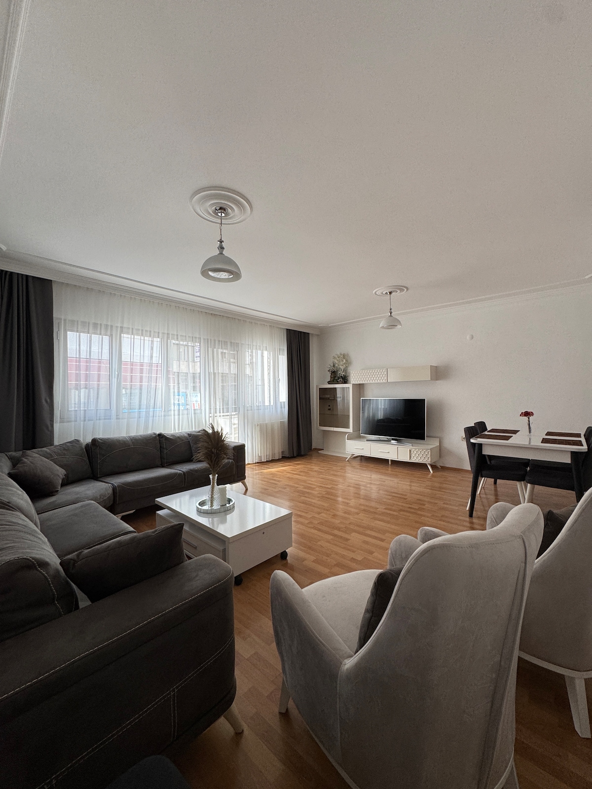 Willkommen in unserer geräumigen Apartment im Zentrum von Karşıyaka für 6 Personen. Die Unterkunft überzeugt durch ihre sehr zentrale Lage – Cafés, Restaurants, Supermärkte, Shoppingmärkte und öffentliche Verkehrsmittel sind in nur paar Minuten zu Fuß erreichbar. Ideal für Familien, Gruppen oder Geschäftsreisende. Vorteile: 3 Schlafzimmer + 1 Wohnzimmer 300m zur Fähre und Tramvay 500m zur Izban Karsiyaka Istasyonu (direkte Verbindung zum Flughafen) 90km (1h Autofahrt) nach Cesme/Alacati