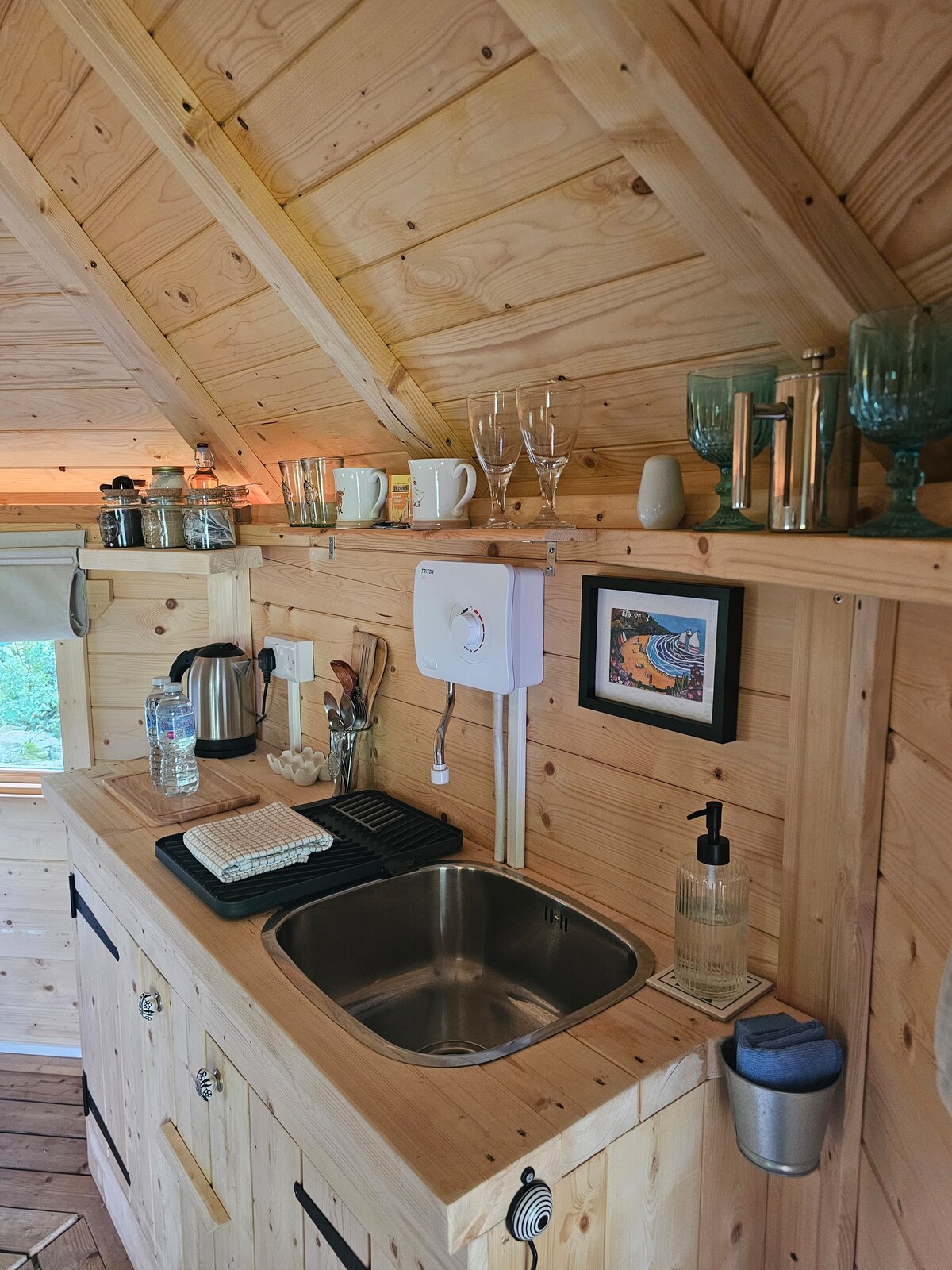 Ty Twt - îngrijit și confortabil - face parte din Wildernest, un refugiu situat pe dealurile de coastă de deasupra încântătoarei văi Aeron. Dormitul se face în croglofft, deasupra spațiului de locuit din bucătărie, cu al doilea dormitor și duș la parter; încălzire prin pardoseală și arzător de bușteni. Poate dormi 4 persoane, dar spunem 3 persoane confortabil. Prin urmare, nu se percepe nicio taxă pentru o a patra persoană. Dacă aveți nevoie ca al doilea pat să fie făcut, vă rugăm să introduceți 3 (sau 4) oaspeți.