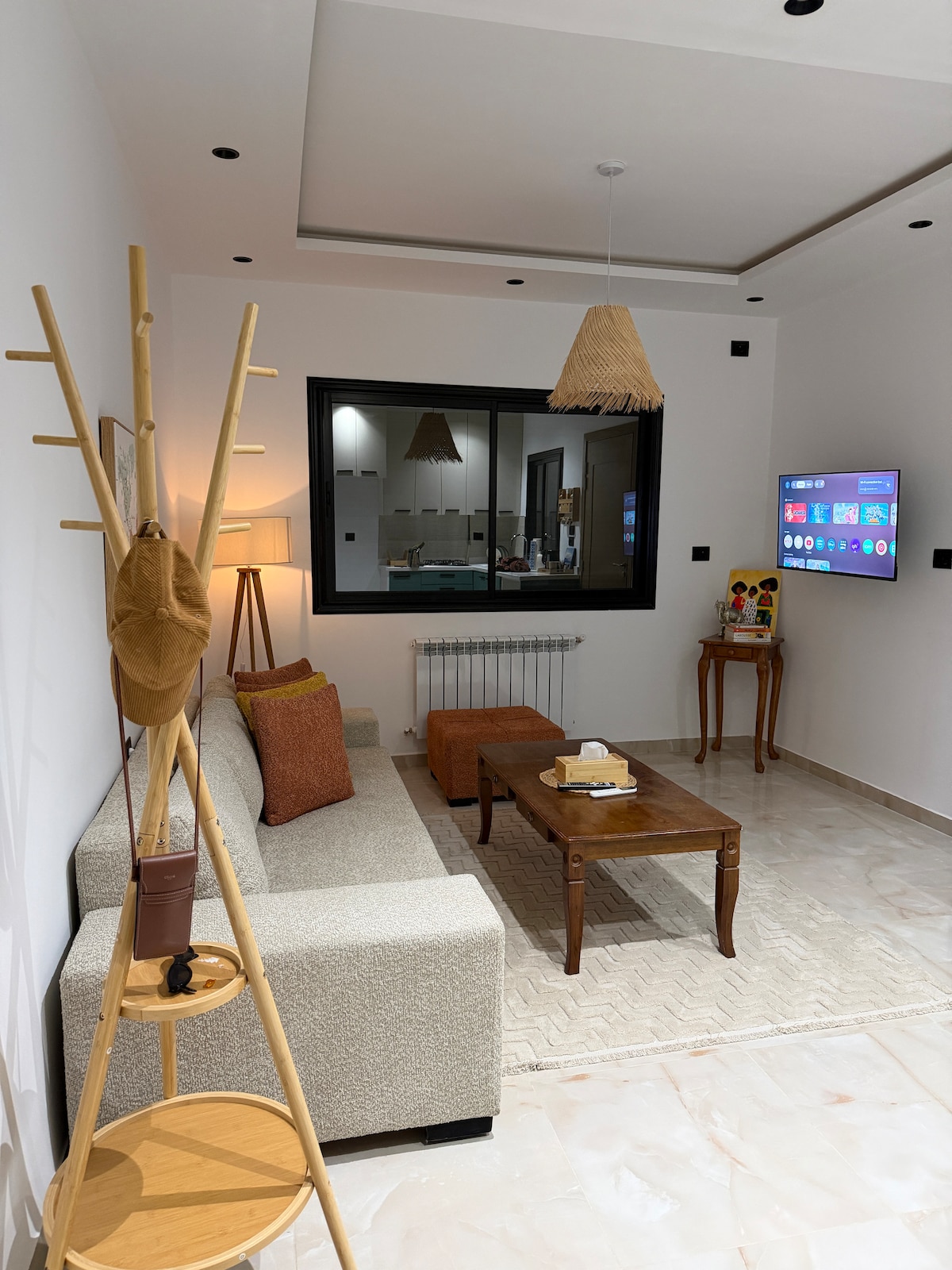 Bine ai venit în apartamentul tău elegant și spațios din inima orașului Tunis. Decorat cu atenție și complet utilat, acest refugiu urban oferă confort modern la doar câțiva pași de magazine, cafenele și locuri culturale. Fie că ești aici pentru muncă sau petrecere a timpului liber, bucură-te de o ședere liniștită, cu tot ce ai nevoie — Wi-Fi rapid, un pat confortabil, o bucătărie completă și multă lumină naturală.