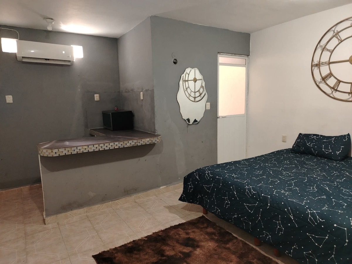 Apartament confortabil 1BR – sigur și convenabil Unitate luminoasă la parter într-o comunitate închisă și liniștită. Perfect pentru cei care călătoresc singuri sau pentru cupluri. Distanță de mers pe jos până la Spitalul și Academia de Poliție Pemex. Caracteristici: ✔ Bucătărie complet utilată. Wi-Fi și spațiu de lucru ✔ puternic Parcare ✔ acoperită (încape o mașină) ✔ Acces ușor pe stradă Ideal pentru vizite medicale, afaceri sau șederi de scurtă durată. Un refugiu confortabil, fără bătăi de cap!