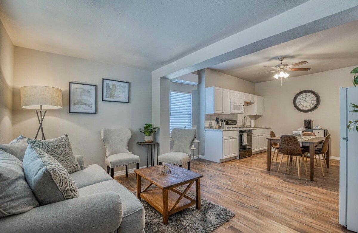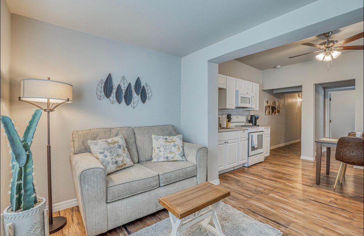 Aproape niciodată disponibil, ești în noroc!!! Duplex confortabil în centrul orașului El Paso Historic District Locație aproape de toate, cu tot ce ai nevoie, 2 dormitoare 1 baie, bucătărie completă, sufragerie și living cu un televizor Roku de 43" Confortabil, sigur, complet reînnoit, living, 1 loc de parcare. Mersul pe jos ajunge în 10 minute în Plaza San Jacinto, 15 minute până la stadionul Chihuahua. Aproape de UTEP, Colegiul Comunitar, spitale, parcuri, poduri internaționale, bănci, magazine, muzee și restaurante. La 15 minute de aeroport.