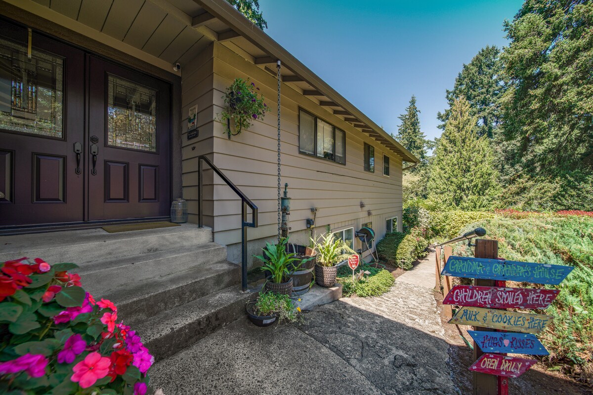 O casă de oaspeți mare și privată la nivelul inferior al locuinței, la doar 30 de minute de Portland. Mt. Hood, Cascade Gorge și drumeții pitorești la mai puțin de 60 de minute de mers cu mașina. Patul super confortabil, nopțile liniștite, canapeaua rabatabilă și atmosfera relaxantă fac din acesta un loc ideal pentru a petrece timpul și a vă odihni. Acceptăm TOATE culorile, LGBTQ. Trebuie să citești toate informațiile, regulile casei și detaliile înainte de rezervare. Oaspeții informați sunt oaspeți mulțumiți. Poate găzdui check-in la ora 15:00 în fiecare zi a săptămânii, cu excepția zilelor de marți.