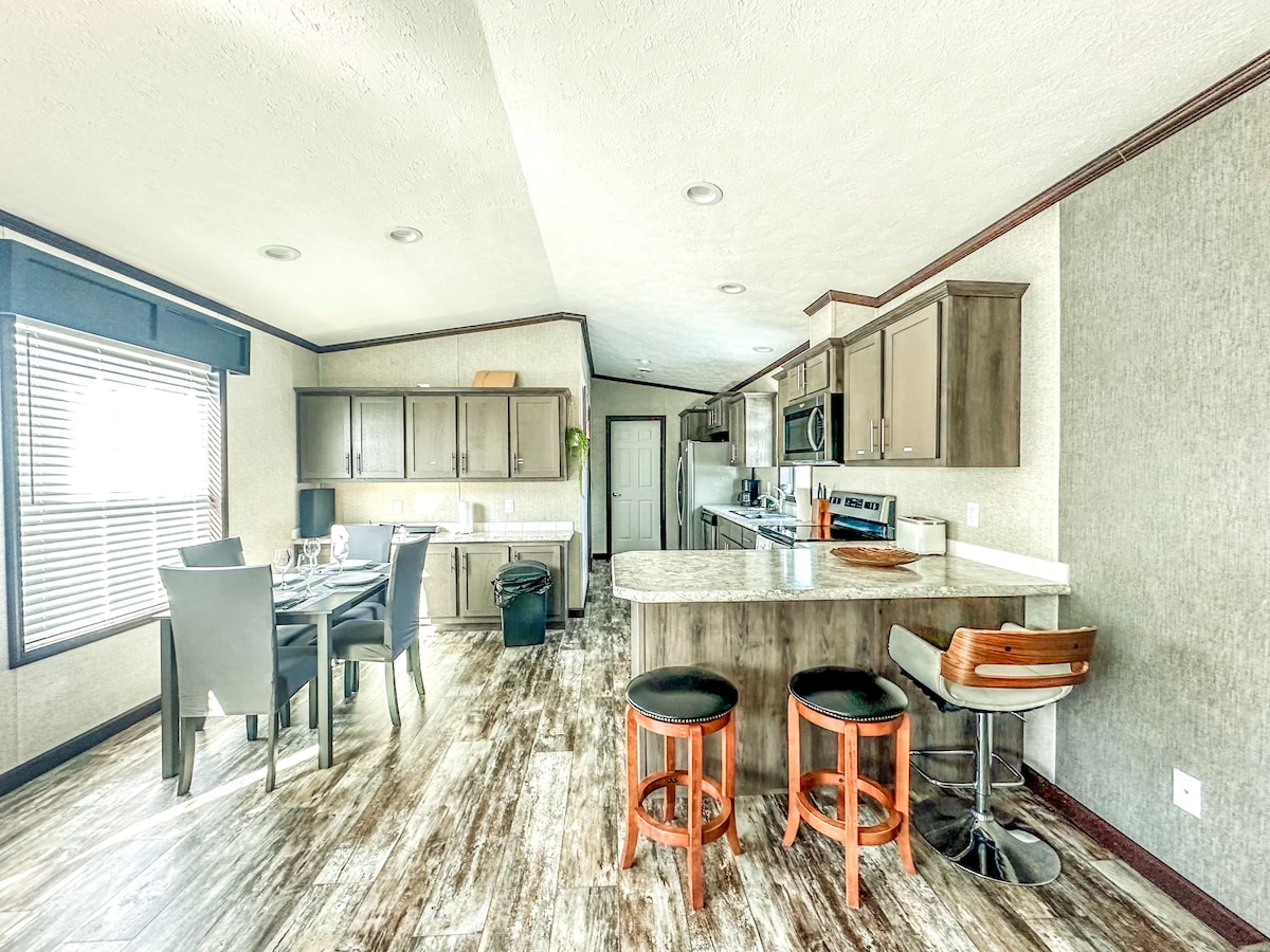 Bine ai venit la cabana rustică confortabilă de la țară, spa/evadare artistică. Relaxează-te în cada de cowboy în aer liber pe tot parcursul anului și bucură-te de cafeaua de dimineață sau de privitul stelelor în jurul unui foc de tabără care trosnește și ascultă coioții urlând noaptea În exterior, o colibă pentru grătar, jocuri de curte pentru a te juca și câinii tăi se pot juca liber într-o curte spațioasă. În interior, jocurile de societate așteaptă, iar șemineul cu gaz este cald și primitor Coș de manichiură/pedichiură SPA Atelier de ARTĂ și OLĂRIT disponibil împreună cu gazda ta. La 3 km de un lac, un râu și un magazin la țară