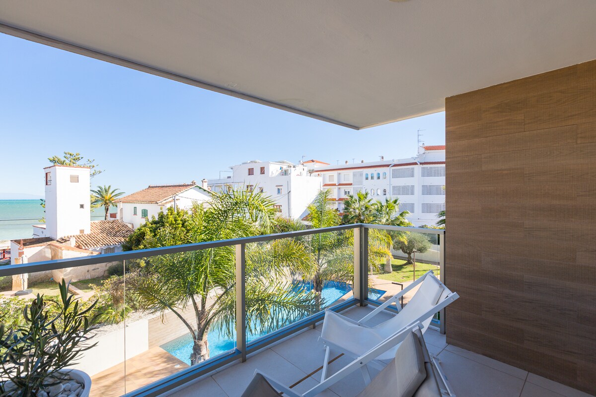 Apartament premium pe plajă cu 3 dormitoare, terasă și piscină în Javea
