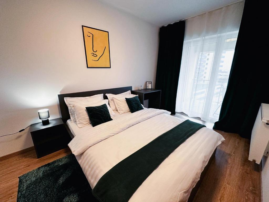 Acest apartament modern și distinctiv cu un dormitor oferă vederi spectaculoase asupra liniei orizontului orașului. Acesta are o locație excelentă și este situat la doar 2 minute de mers pe jos de Iulius Mall. Acesta cuprinde un dormitor cu pat dublu (fără ușă), un living cu o canapea extensibilă (pat pentru oaspeții 3 și 4), o bucătărie complet utilată, o baie și un balcon panoramic. Clădirea rezidențială de lux oferă parcare, securitate 24 de ore, grădină privată și multe altele.