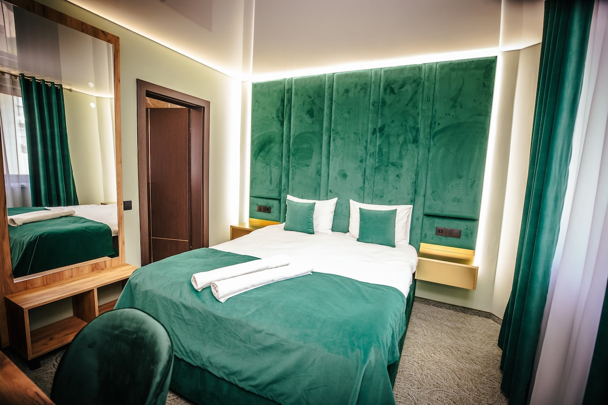Room Features: Private Bathroom Comfortable Double Bed Flat-Screen TV High-Speed Wi-Fi Common Area: Fully-Equipped Kitchen Dining Area Located in the center of Cluj-Napoca, City Central Escape offers easy access to the city's attractions, restaurants, cafes, and shops, just a short walk away from the Main Square and the vibrant nightlife. Public transportation is also easily accessible. Guests can rent individual rooms, ensuring privacy while also having the option to enjoy the common areas.