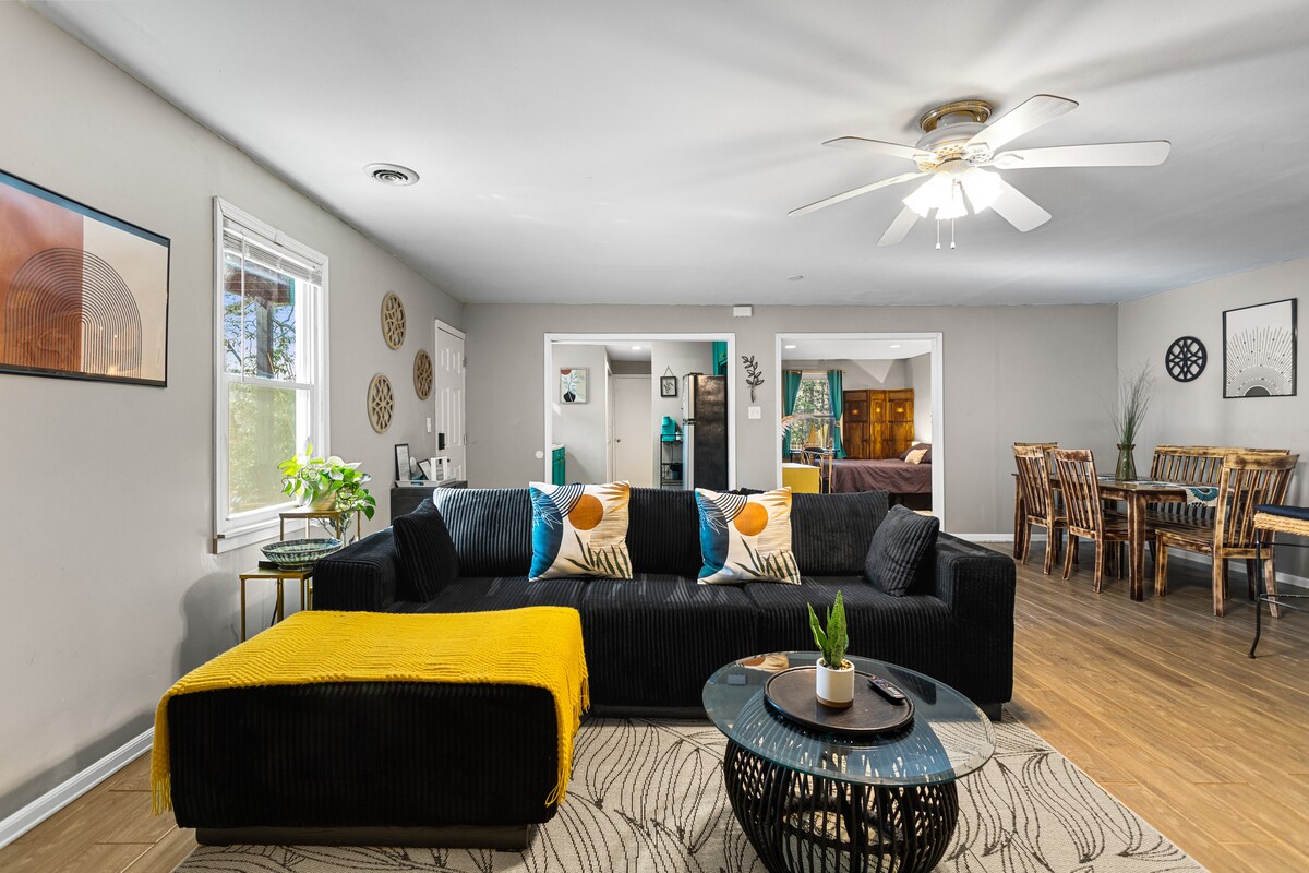 This beautiful, spacious, in-law suite in Smyrna is less than 6 miles from The Battery/Truist Park and 15 miles from downtown Atlanta. Enjoy easy access to shopping and great restaurants, then unwind in a quiet, serene retreat. The suite features a full kitchen, private bath, living room, smart TV, workspace, dining area, queen-size bed, sofa bed, and a private patio, perfect for relaxing and feeling right at home.