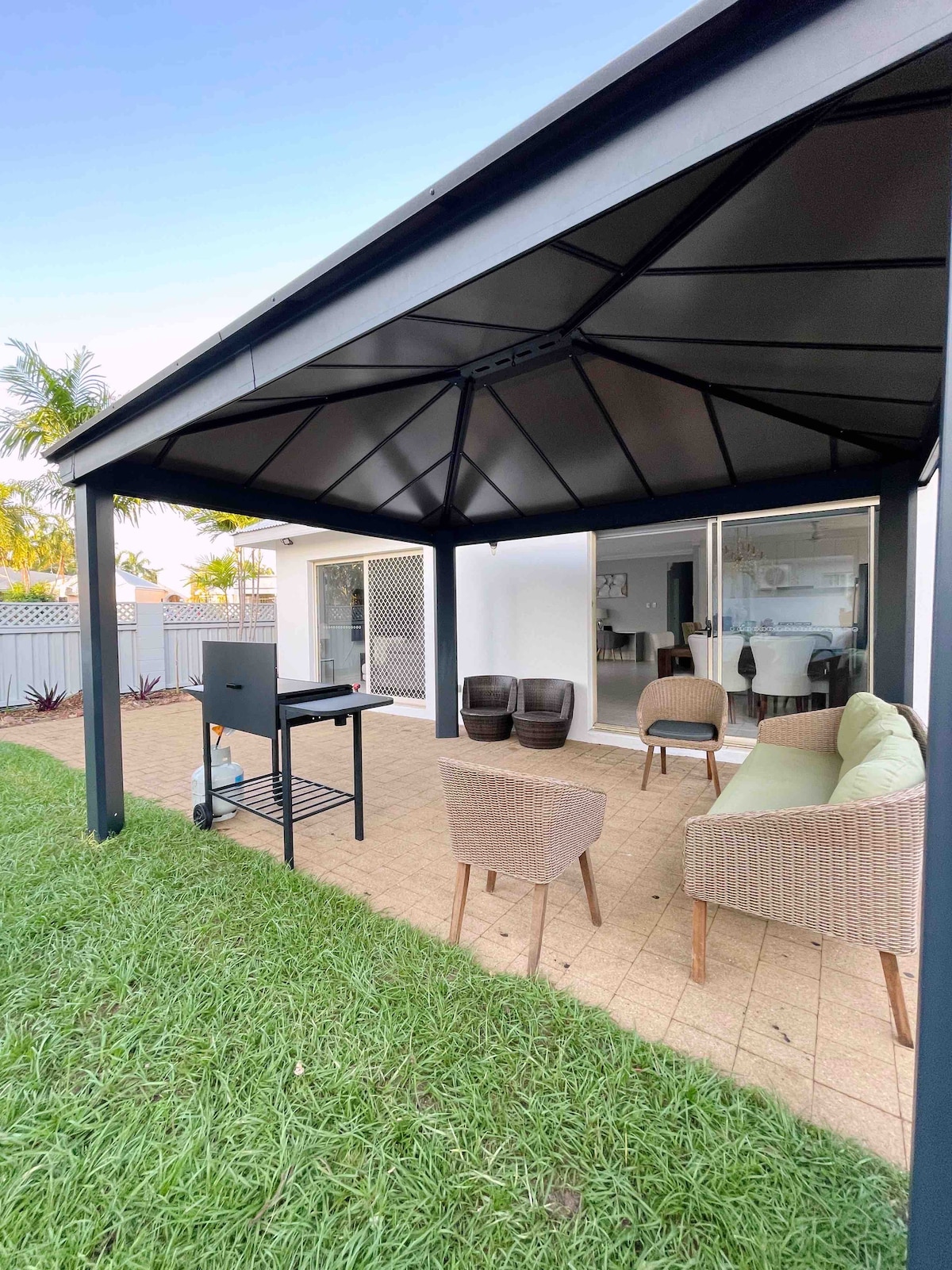 Bucură-te de o ședere confortabilă în această casă nouă, privată, cu 2 dormitoare, pe proprietatea noastră din Nightcliff. Are propriul acces pe alee și parcare subterană încuiată, oferind intimitate și securitate completă. În interior, vei găsi un living mare în plan deschis, o bucătărie de dimensiuni normale, cu o mulțime de spațiu pe bancă, două dormitoare generoase, fiecare cu paturi confortabile de dimensiuni queen-size, TV cu Netflix și o mașină de spălat pentru confortul tău. Un cadru în aer liber și grătar oferă un spațiu perfect pentru relaxare și destindere