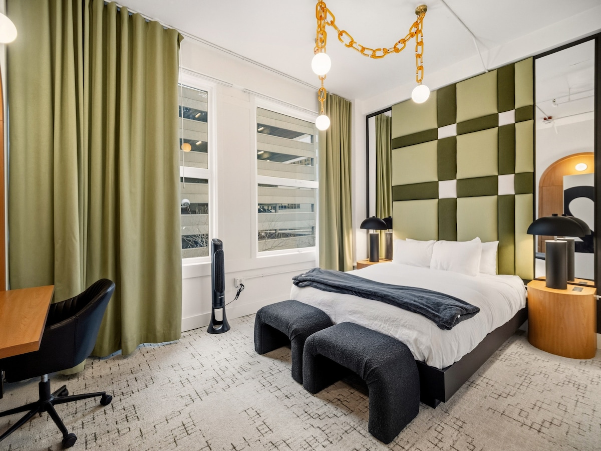 Bine ai venit la Symons Block Hotel, un sejur de tip boutique în inima centrului orașului Spokane. Odihnește-te într-o cameră confortabilă, în stil european, cu lenjerie de pat moale, halate turcești din bumbac și picturi murale realizate de artistul local Moneta Lyons. Bucură-te de reduceri pentru oaspeți la favoritele din apropiere, cum ar fi People's Waffle, Cochinito și Indaba Coffee - la câțiva pași de cele mai bune restaurante și artă din Spokane. Check-in: 16:00 Check-out: 10 AM