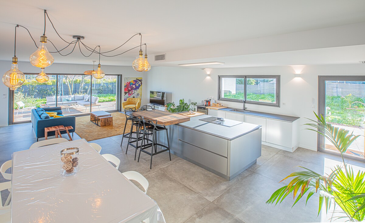 → Terasă cu vedere panoramică la mare → Renovat de un arhitect bine-cunoscut Echipat → modern: aer condiționat în fiecare cameră, bucătărie complet utilată → 3 dormitoare cu paturi matrimoniale (160 cm x 200 cm) și 3 băi → Saună și spa → Situat la 10 minute de calanques → 3 minute de potecile de drumeții → Acces direct la plajă → Fără vecini cu vedere, foarte liniștită → Autobuz la doar o scurtă plimbare Parcare → privată disponibilă lângă casă