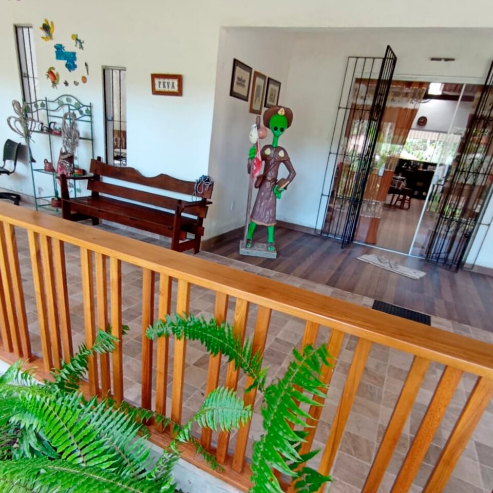 Descubra a magia de se hospedar em meio à natureza no Sítio Peregrino, sem perder a conexão com o que realmente importa: a tranquilidade da floresta. Aqui, você acorda com o canto dos pássaros, sente a brisa que embala as árvores e, com sorte, pode avistar macacos brincando entre os galhos. Conecte-se com a paz e a harmonia ao som da natureza, sem abrir mão de comodidades como wi-fi, frigobar, roupeiro e ventilador. Um refúgio perfeito para relaxar, meditar ou simplesmente desacelerar.