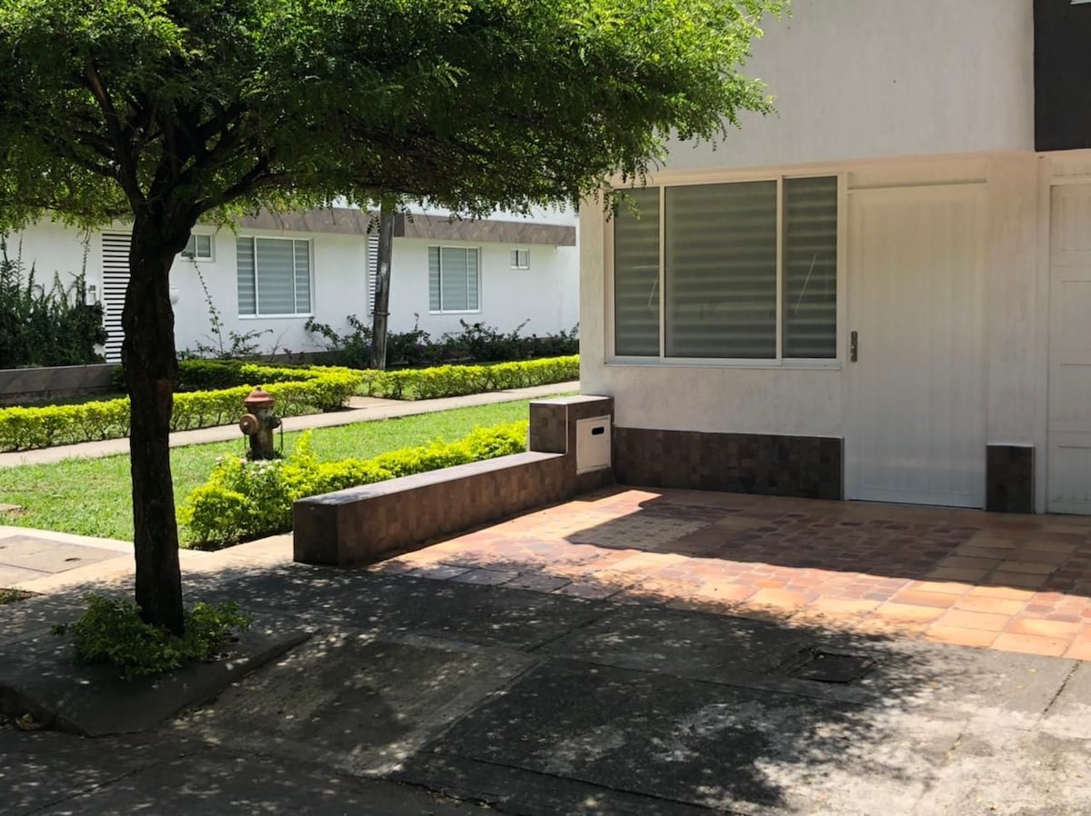 Experimentează o viață modernă confortabilă în apartamentul nostru cu 2 dormitoare de la primul etaj, cu grădini interioare spațioase și luxuriante. Lucrează confortabil la biroul tău. Bucură-te de confortul unei parcări private. Copacii mari împodobesc strada liniștită, sigură, cu o stație de pază non-stop în fața imobilului. Situat în cartierul sudic Pampalinda din Cali, la doar câțiva pași de un parc mare, Universitatea din Santiago de Cali și de cea mai nouă experiență de cumpărături și luat masa a orașului la Mall Plaza.