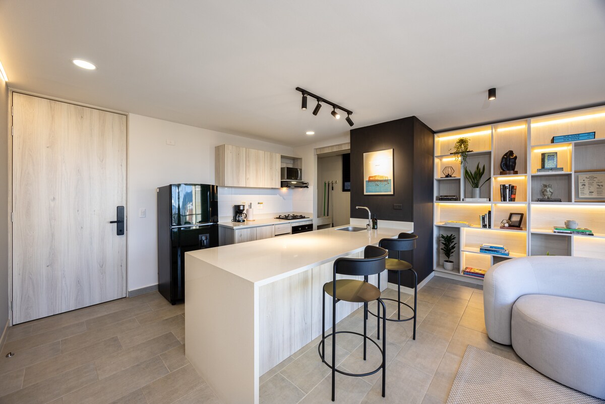 Răsfață-te cu lux la Medellin, cuibărit în inima vibrantă a cartierului Provenza. Bucură-te de mobilier opulent, jacuzzi privat, vedere la linia orizontului orașului și dotări de ultimă oră. Fiecare reședință cu 2 paturi/2,5ba cu design meticulos oferă confort și sofisticare. Cufundă-te în cafenelele, buticurile și viața de noapte renumită din Provenza, toate la doar câțiva pași. Experimentează cele mai bune din Medellin în clădirea noastră, unde fiecare detaliu este selecționat pentru o ședere de neegalat.