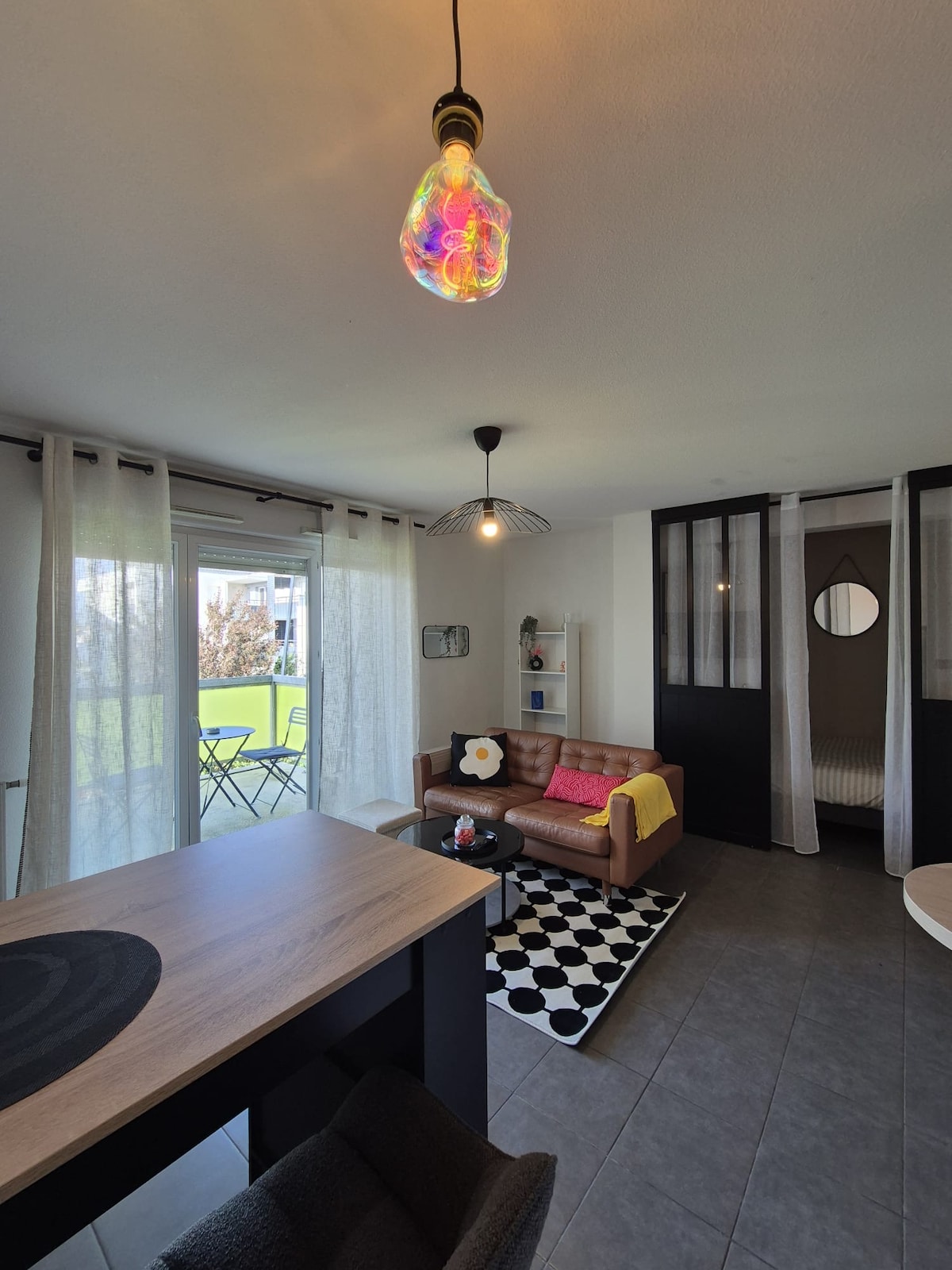 LOGEMENT T2 DE STANDING: 📍Adresse: Esplanade des Ramassiers à Colomiers. 🫶🏼 Entrée autonome sans clef 🫶🏼 Réponses immédiate de l’hôte SITUÉ DIRECT FACE AUX COMMERCES & TRANSPORTS EN COMMUN qui mènent à Toulouse. PROFESSIONNELS et COUPLES: ce cocon offre un cadre idéal et juste inoubliable. DESIGN UNIQUE: Suite parentale privée avec lit suspendu & équipements haut de gamme. CONFORT ABSOLU: Bureau, salon, TV, cuisine équipée, wifi ultra débit, balcon sans vis-à-vis. Logement connecté