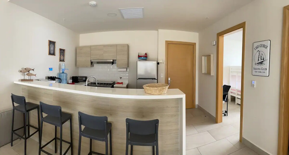 Playa Escondida is a jewel in the Caribbean with white sand and surrounded by turquoise water and full of green. The apartment is super comfy, with all amenities for a perfect stay. The condo counts with a great infrastructure, including a restobar, a shawarma grill, sushi bar and a convenience store. There is a wonderful swimming pool; 2 lagoons suitable for swimming; a football (5p) court; gym and plenty of space for you to walk along safe and sound.