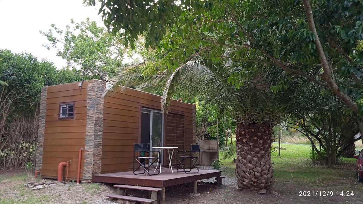 Casitas_del_ensueno: Cabaña la doar 50 m de plajă și înconjurată de păduri autohtone. În mijlocul naturii, este construit din materiale calde și de designer, deschideri duble din sticlă, aragaz cu lemne. Spațiu deschis mare cu vedere la pădure, living-bucătărie cu totul pentru 4 oaspeți (max. 3 adulți), 1 dormitor privat cu ieșire la terasă, al doilea dormitor cu pat de cuib (twin) și a doua baie. WiFi de la FibraOptica. Lumină pură și pădure la doar câțiva pași de râu. Parcare, grătar, TV, hamac, șezlonguri.