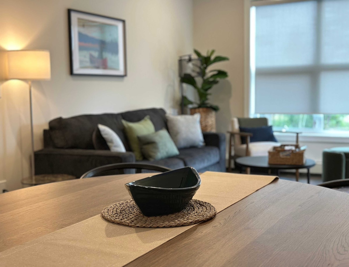 Acest apartament nou-nouț cu două dormitoare este inundat de lumină naturală, are priveliști montane remarcabile și are vedere la râu. Planul contemporan al etajului deschis, un loc artistic și confortabil, care doarme până la 4 persoane și este ideal pentru cupluri sau o familie. Situat central în centrul orașului, ești la doar câțiva pași de cafenelele, magazinele și restaurantele tale preferate. Ești la câteva minute distanță de de dealul de schi și de traseele de biciclete Moonraker/CBT și chiar pe calea râului. Număr de înregistrare provinciala H391623453