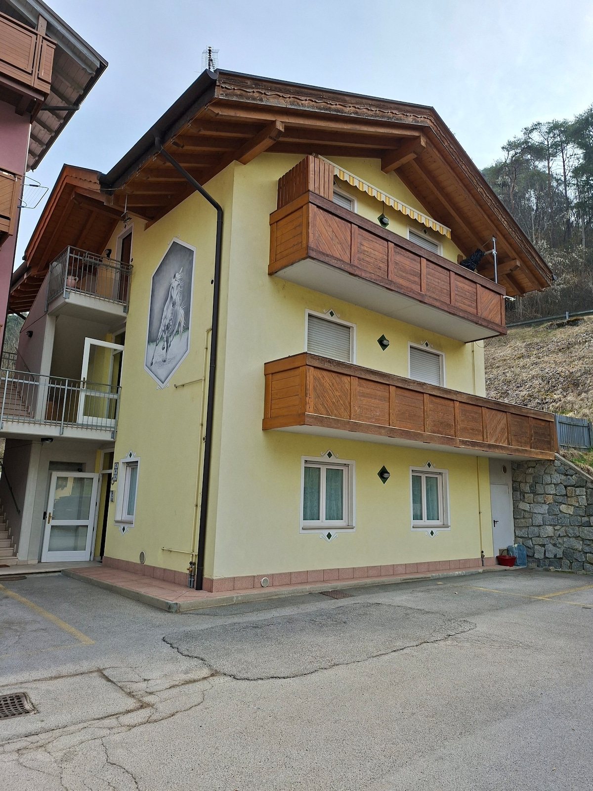 pensiunea se află într-un sat rural din Vallagarina, la 1 km de drumul național 12. Conducerea este familiară, un loc liniștit înconjurat de podgorii și măslini. Structura oferă 2 camere marțiale cu posibil pat suplimentar, canapea extensibilă (8 oaspeți în total) bucătărie, living, baie mare, un balcon cu vedere, o terasă mare, o grădină cu iarbă cu șezlonguri, o mică piscină încălzită cu jacuzzi numai vara, parcare\ motocicletă acoperită Excelent pentru bicicliști și familii.