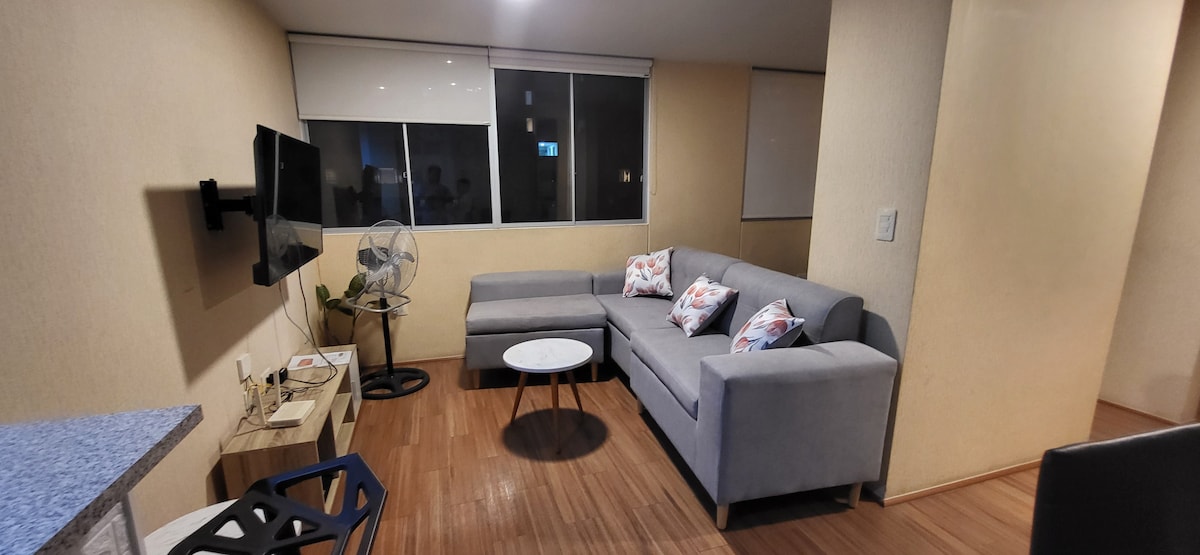 Un spațiu care se gândește să se odihnească confortabil cu tot confortul pentru a vă face să vă simțiți ca acasă. Dacă sunteți în trecere prin Lima și de așteptare pentru următorul zbor? Acesta este locul perfect! Foarte aproape de Aeroportul Internațional Jorge Chavez. Apartamentul are: 1 pat queen-size supraetajat cu 1 pat de 1/2 locuri Frigider cu apă caldă cu congelator, mașină de spălat rufe, cuptor, aragaz, cuptor cu microunde, bucătărie, ustensile, tacâmuri. Super internet Wi-Fi MASWINNER capacitate 500 Mbps. Dormitor cu aer condiționat.