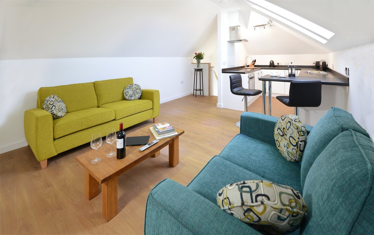 Acest apartament recent decorat, modern, la subsol, este amplasat în inima peisajului rural din Bath, cu vedere panoramică. Cu intrare separată, studioul oferă dotări nou-nouțe, mobilier modern, Wi-Fi și parcare off-road. Situat la 5 mile de centrul orașului Bath, poți conduce cu ușurință sau poți lua un autobuz de 25 de minute până în oraș, la 100 m de ușa din față. Studioul se află la 2 minute de magazinele alimentare din sat și la 20 de minute de faimoasa plimbare la țară Skyline din Bath.