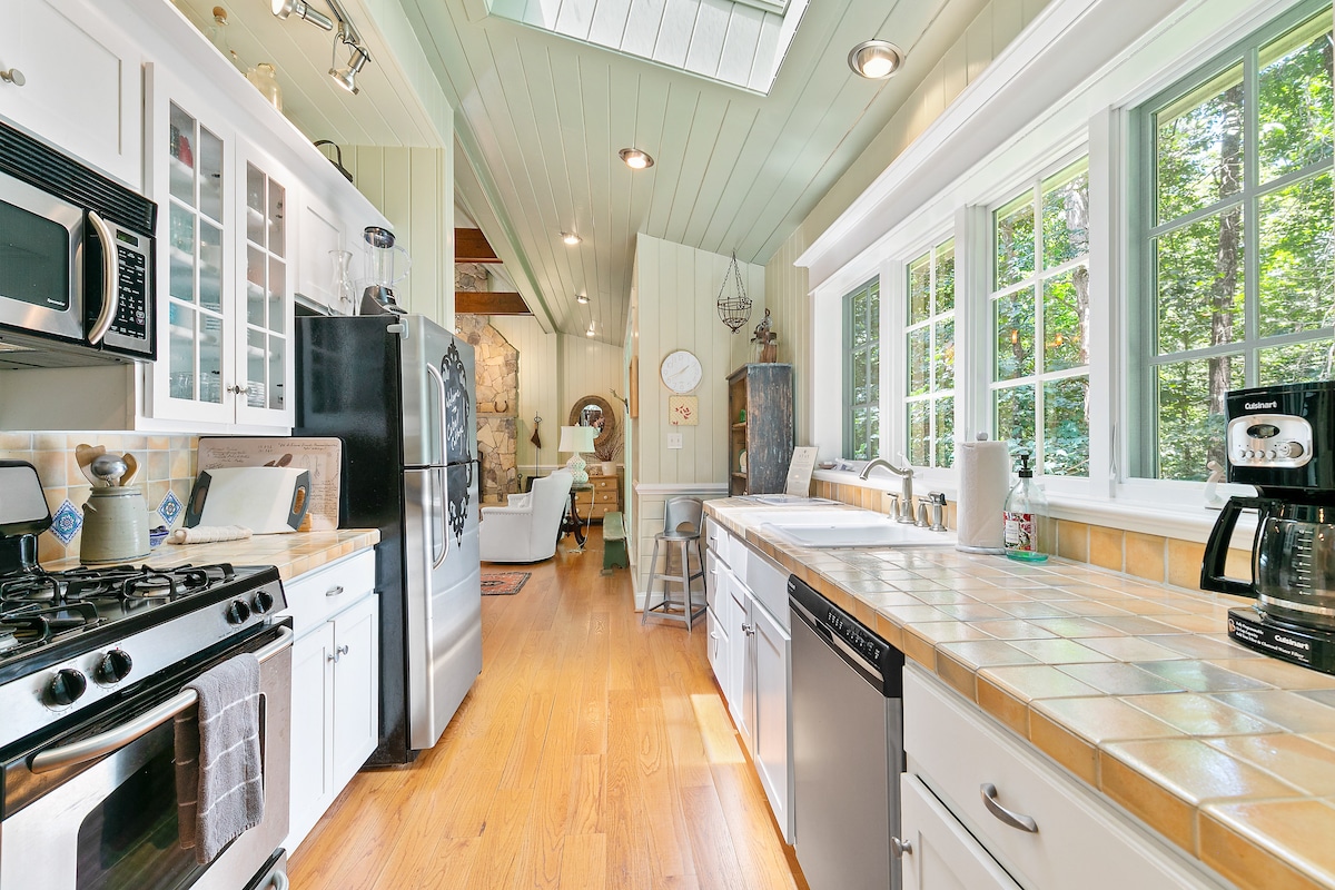 Woodwind Cottage este o cabană nouă, frumos construită, cu living, dormitor, baie, bucătărie și loft. Are detalii arhitecturale fermecătoare și o verandă acoperită pentru a te bucura de priveliștea pădurii. Podul are o canapea extensibilă pentru un oaspete suplimentar sau un spațiu de lucru privat. Locuința are Wi-Fi, TV inteligent pentru streaming și un șemineu cu gaz. Bucură-te de lectură în scaunul supradimensionat al ferestrei, ridică-te devreme pentru a vedea căprioare în curte sau, poate, un balon cu aer cald deasupra capului primăvara și toamna.