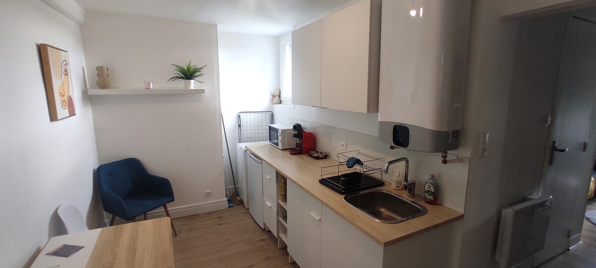 Relaxează-te în această casă liniștită și elegantă de 40m2 complet renovată. Acesta este situat în inima orașului Conches, aproape de toate magazinele. Acesta este compus dintr-un dormitor, o bucătărie deschisă spre living dotată cu un al doilea pat (canapea extensibilă). Baia este dotată cu un duș italian. Există, de asemenea, o mașină de spălat disponibilă. Te vei distra cu noi!